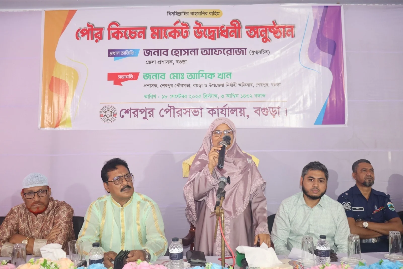 বগুড়ার শেরপুর পৌরসভার বহুল প্রতীক্ষিত কিচেন মার্কেটের আনুষ্ঠানিক উদ্বোধন হয়েছে। বৃহস্পতিবার (১৮ সেপ্টেম্বর) সকালে পৌর শহরের বৈকাল বাজারে নির্মিত এ কিচেন মার্কেটের উদ্বোধন করেন বগুড়া জেলা প্রশাসক হোসনা আফরোজা।