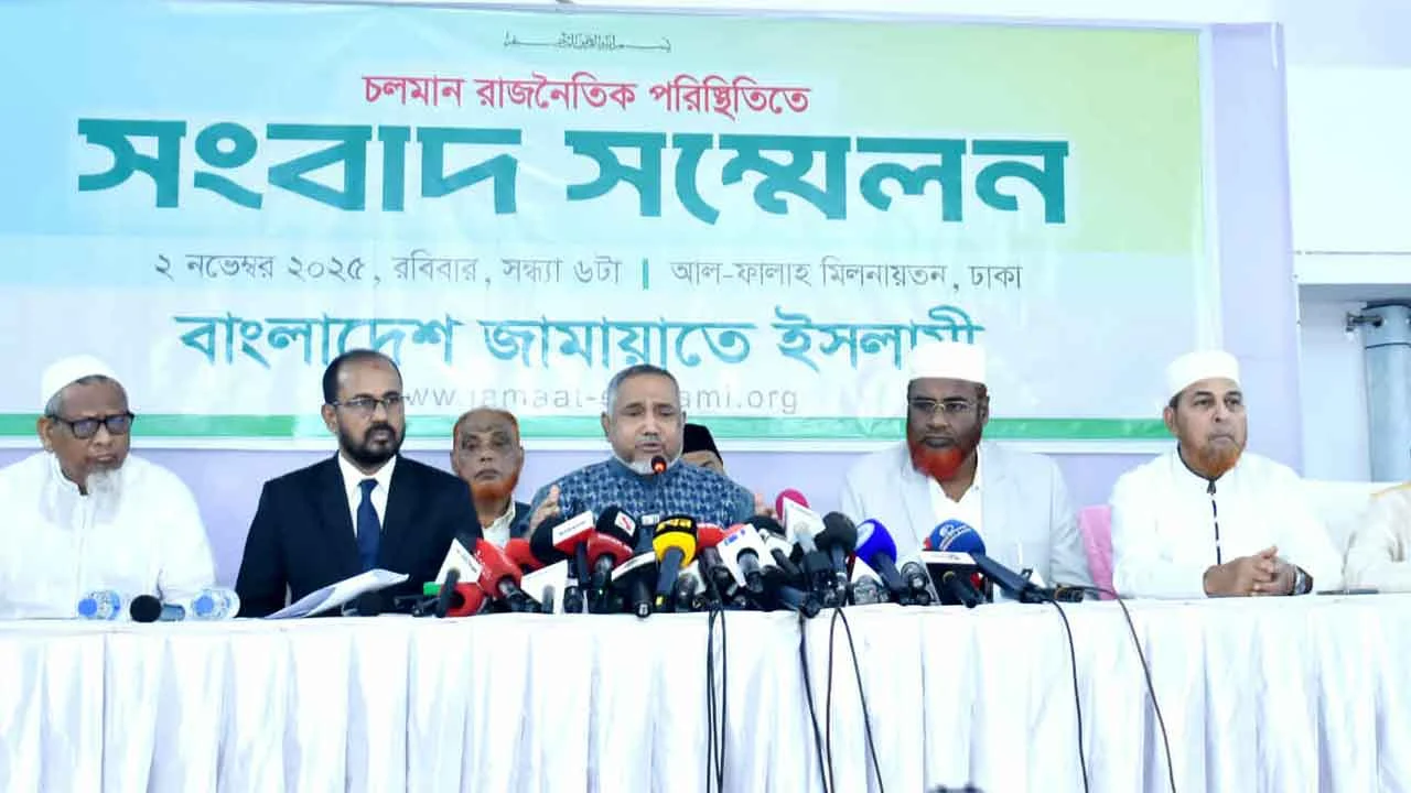 বিদ্যমান রাজনৈতিক পরিস্থিতিতে দলীয় অবস্থান জানাতে রোববার (২ নভেম্বর) সন্ধ্যার পর মগবাজারের আল ফালাহ মিলনায়তনে আয়োজিত জরুরি সংবাদ সম্মেলনে এসব কথা বলেন জামায়াতের নায়েবে আমির।