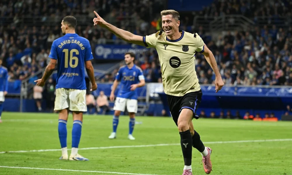 প্রতিপক্ষ রিয়াল ওবেইদোর মাঠে গিয়ে প্রথমার্ধে পিছিয়ে পড়েছিল বার্সেলোনা। সেখান থেকে ঘুরে দাঁড়িয়ে কেবল জয়ই পায়নি, হ্যান্সি ফ্লিকের দল একপেশে দাপটও দেখিয়েছে। ৩-১ গোলের এই জয়ে...