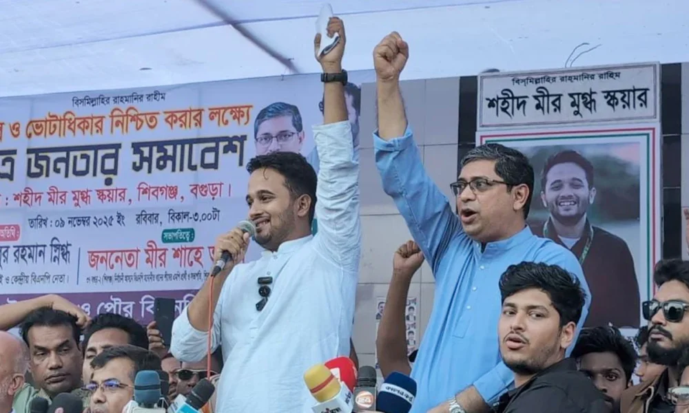 বগুড়া-২ (শিবগঞ্জ) আসনে উৎসবমুখর পরিবেশে চব্বিশের গণঅভ্যুত্থানে শহীদ মীর মাহফুজুর রহমান মুগ্ধের ভাই মীর মাহবুবুর রহমান স্নিগ্ধকে বরণ করেছে স্থানীয় বিএনপির নেতাকর্মীরা। মীর স্নিগ্ধকে স্বাগত জানাতে...