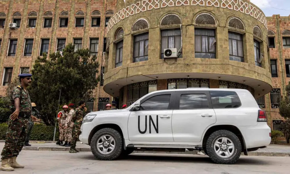 ইয়েমেনের তাইজে শহরে স্থানীয় কর্মকর্তাদের সাথে দেখা করার সময় জাতিসংঘের একটি গাড়ি বাইরে দাঁড়িয়ে আছে। ছবিটি ২০২৪ সালের ১২ ফেব্রুয়ারি তোলা ইয়েমেনের রাজধানী সানায় জাতিসংঘ পরিচালিত...